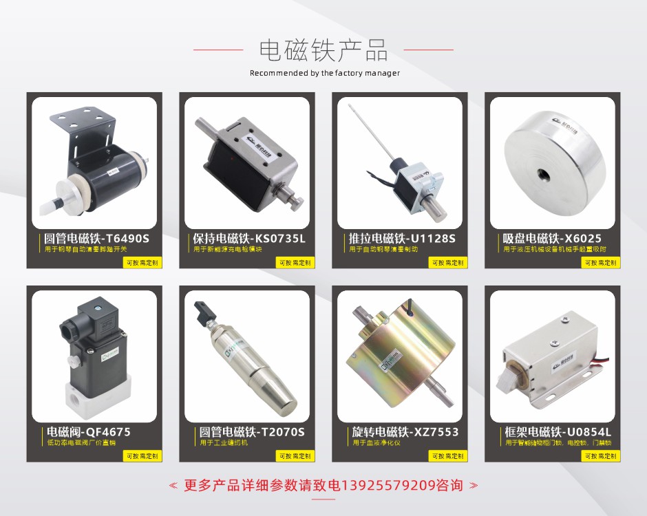 由于采用高導磁的材料和帶有錐形配合的磁路結構,因此產品雖然體積小、重量輕,但與常規(guī)的小型電磁鐵相比,其行程和吸引力都較大,因其繞線空間利用率高,線圈部分是敞開式的,散熱效果好。
